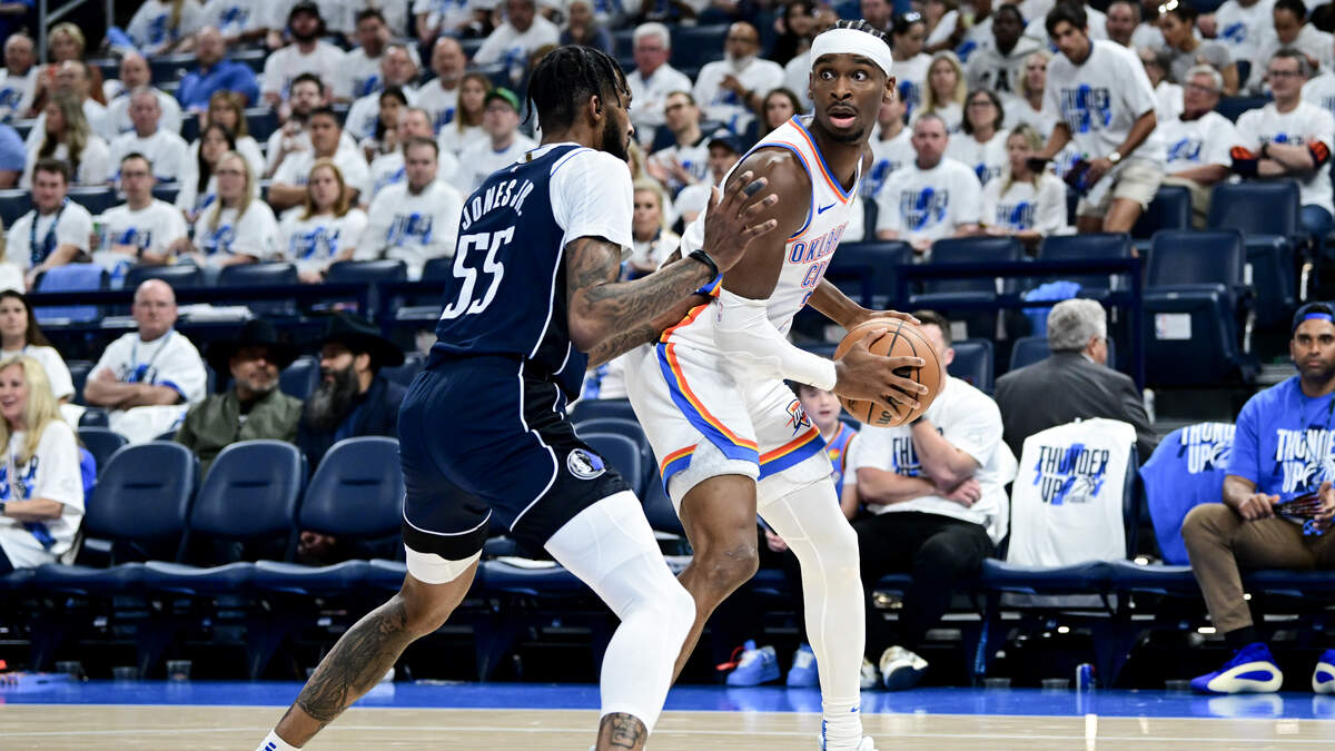 The Oklahoma City Thunder remain undefeated this postseason following a 117-95 rout of the Dallas Mavericks in Game One of the Western Conference Semi-Finals from Paycom Center. The Thunder led by just one in the middle of the third quarter before outscoring the Mavs 51-30 the rest of the way. Shai Gilgeous-Alexander paced OKC with 29 points, nine rebounds, and nine assists, while Chet Holmgren chipped in with 19 points. The Thunder take a 1-0 lead in the best-of-seven series. Kyrie Irving poured in 20 points in the losing effort, while Luka Doncic went just six-for-19 from the field to finish with 19 points. Oklahoma City hosts Game Two on Thursday night.