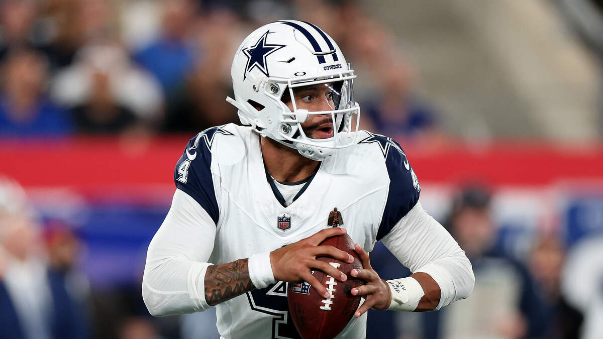 Dak Prescott #4 of the Dallas Cowboys looks to pass the ball during the fourth quarter against the New York Giants at MetLife Stadium on September 26, 2024 in East Rutherford, New Jersey. Photo: Luke Hales / Getty Images Sport / Getty Images